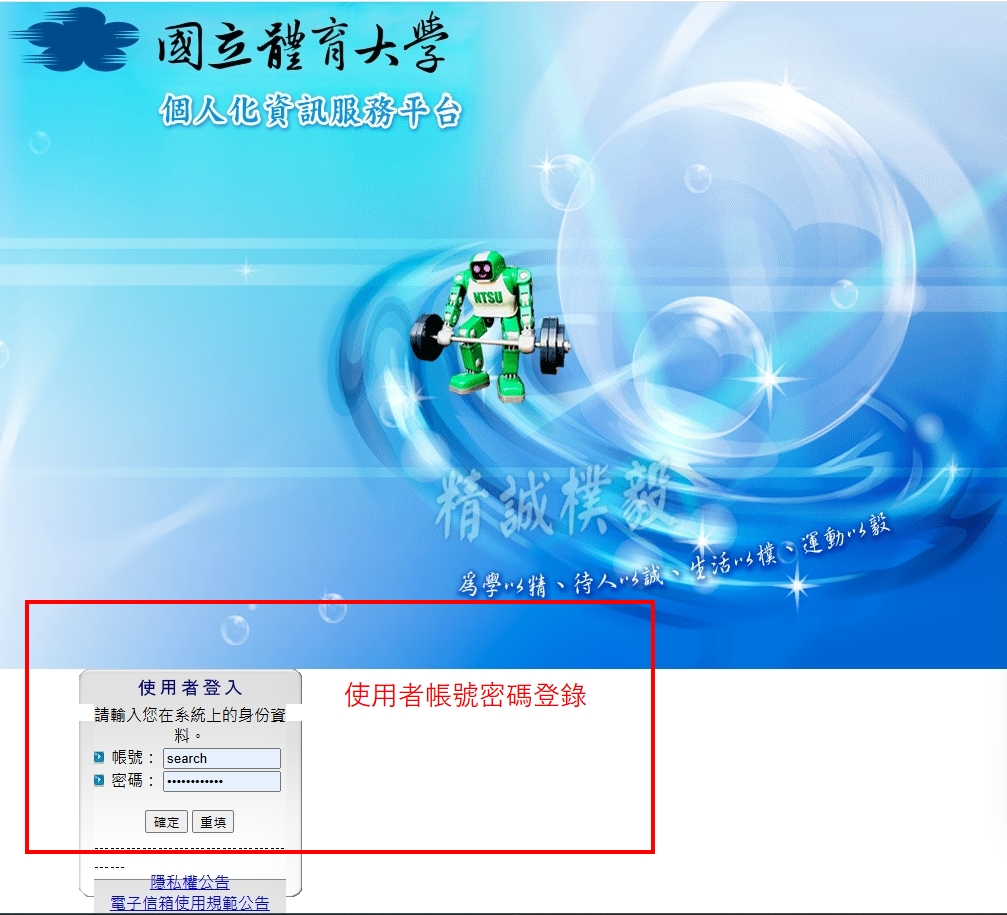 為便利本校師生及外校單位查詢課程資訊,提供以下登入路徑與帳號使用方式說明: